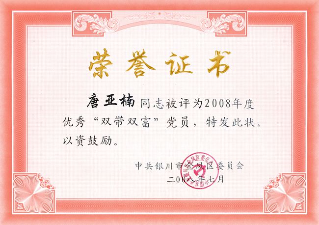 唐亞楠被評(píng)為“雙帶雙富”黨員