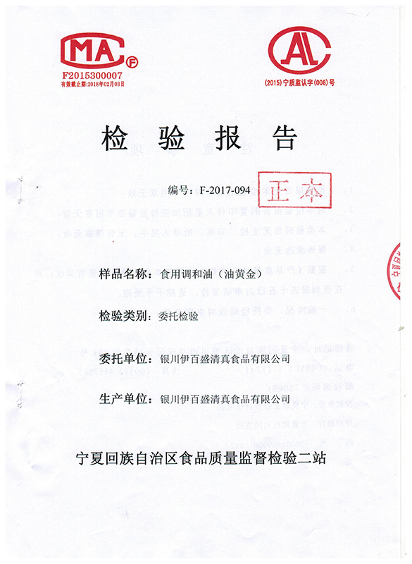 食用調(diào)和油(油黃金)檢驗報告