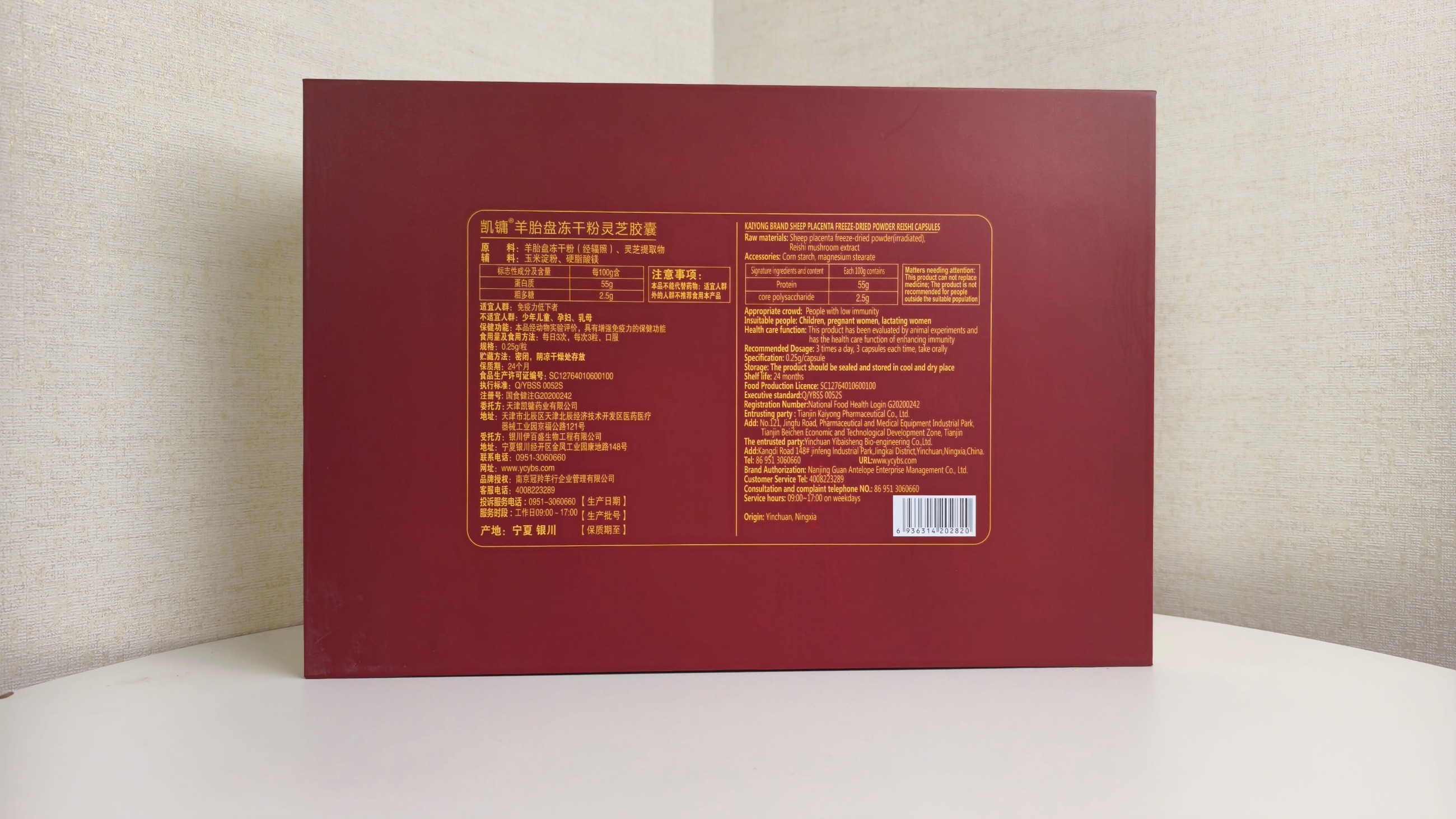【原料】羊胎盤凍干粉(經(jīng)輻照)、靈芝提取物