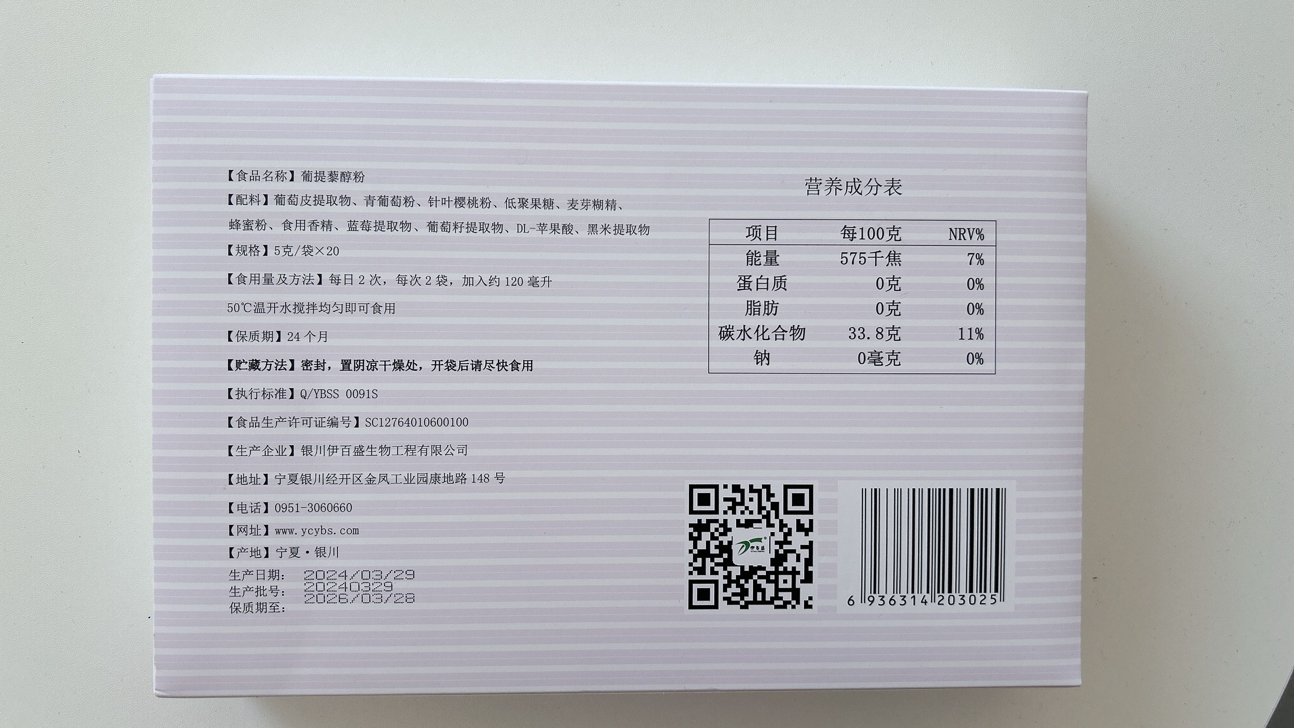 【配料】葡萄皮提取物、青葡萄粉、針葉櫻桃粉、低聚果糖、麥芽糊精、蜂蜜粉、食用香精、藍(lán)莓提取物、葡萄籽提取物、DL-蘋果酸、黑米提取物