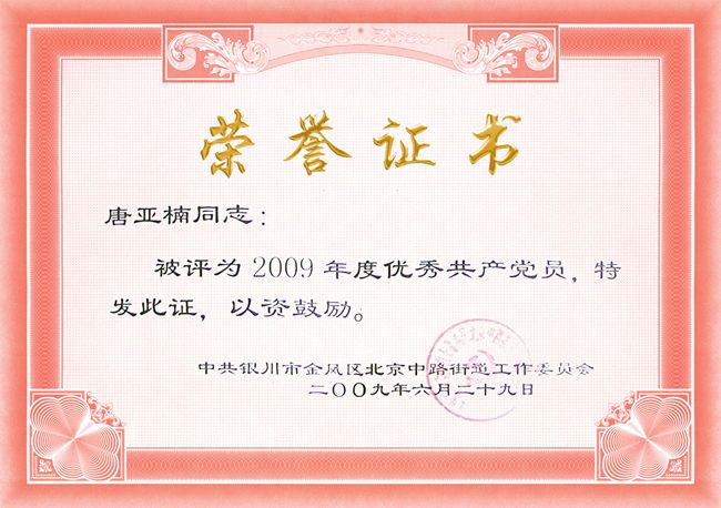 唐亞楠被評為優(yōu)秀共產(chǎn)黨員