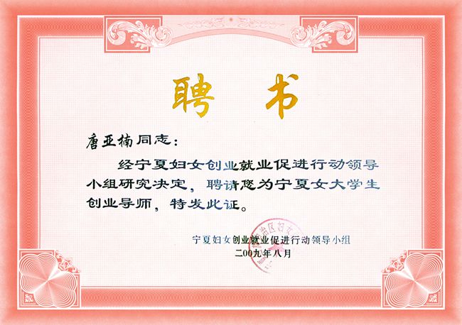 唐亞楠被評(píng)為寧夏女大學(xué)生創(chuàng)業(yè)導(dǎo)師