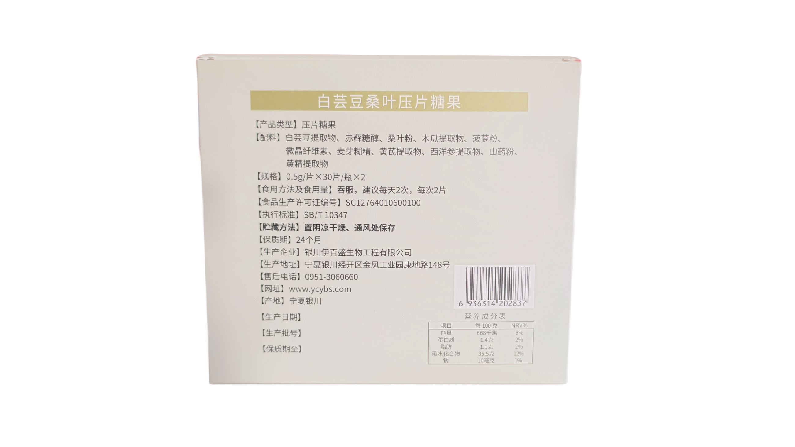 【配料】白蕓豆提取物、赤蘚糖醇、桑葉粉、木瓜提取物、菠蘿粉、微晶纖維素、麥芽糊精、黃芪提取物、西洋參提取物、山藥粉、黃精提取物