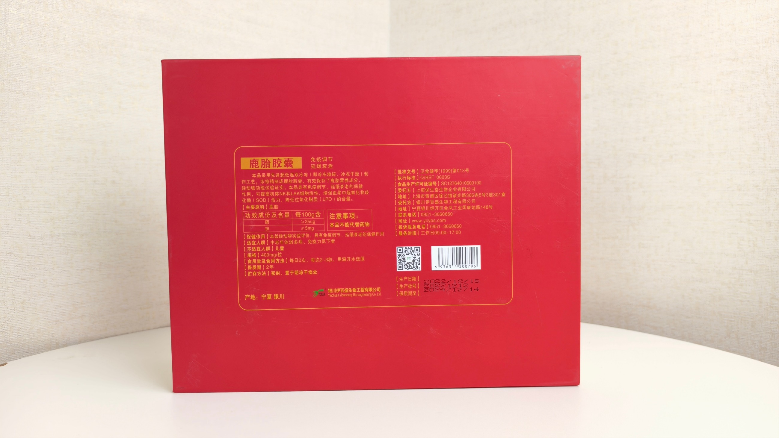 本品采用先進(jìn)超低溫雙冷凍(即冷凍粉碎、冷凍干燥)制作工藝,濃縮精制成鹿胎膠囊,有效保存了鹿胎營養(yǎng)成分,經(jīng)動物功能試驗(yàn)證實(shí),本品具有免疫調(diào)節(jié),延緩衰老的保健作用,可提高機(jī)體NK和LAK細(xì)胞活性,增強(qiáng)血漿中超氧化物歧化酶(SOD)活力,降低過氧化脂質(zhì)(LPO)的含量。